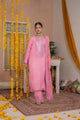 Attribute: Elevate your style with this stunning three-piece ensemble! Featuring intricate front and back embroidery with zari, resham, and sequins on the shirt, paired with panel-style palazzo trousers adorned with gota lace. The embroidered chiffon dupatta, finished with lace and a contrasting pati, adds a touch of elegance.