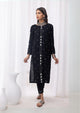 PRODUCT DETAILS: Indulge in the allure of ebon paneled shirt, thoughtfully crafted to enhance your style. The front panel boasts graceful pleats, while the side panel features intricate embroidered booti detailing. The sleeves and neckline are beautifully adorned with embroidery, adding a touch of sophistication.