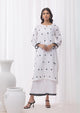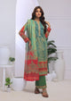 The stunning Coral Haze ensemble features a dynamic symphony of citrus hues in a digital printed shirt with embroidered neckline. The perfect combination of contrasting orange and light blue prints adds an elegant touch, complemented by a dyed cotton lawn trouser. This classy allure is a must-have summer essential.
